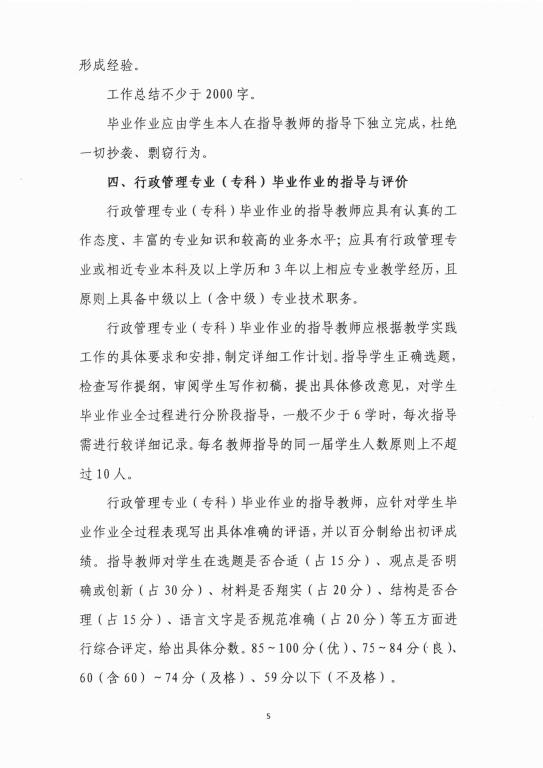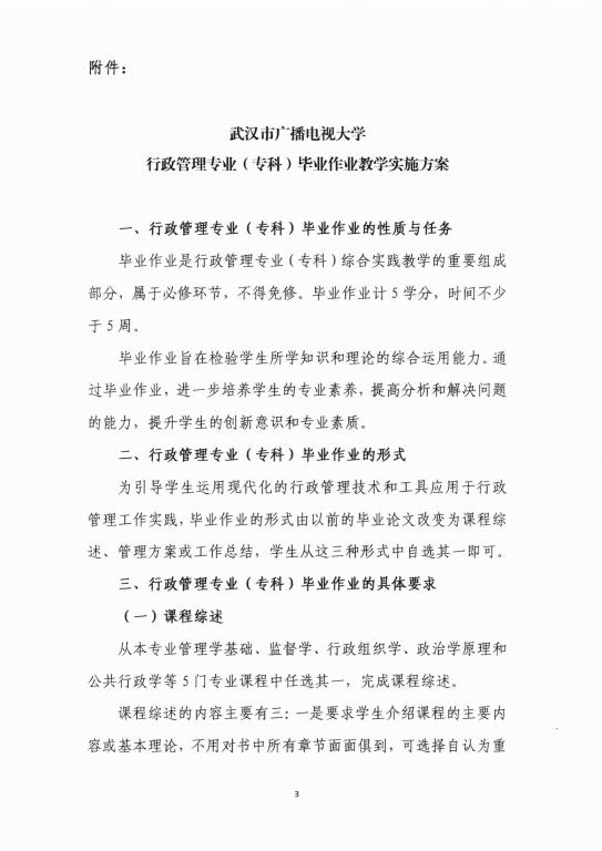 武漢市廣播電視大學行政管理專業(yè)(??疲┊厴I(yè)作業(yè)要求