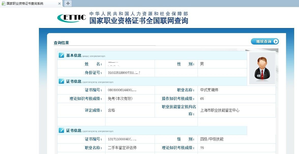 證書查詢結(jié)果
