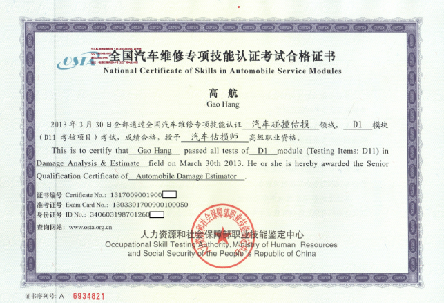 學(xué)員估損師證書樣…
