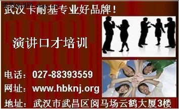 武漢卡耐基以“幫助個(gè)人;青少年;及企業(yè)成長(zhǎng),富強(qiáng)我們的祖國(guó),鑄民族之***”為已任。所開設(shè)的武漢卡耐基口才訓(xùn)練是經(jīng)湖北省武漢市唯一授權(quán)掛牌正規(guī)從事當(dāng)眾講話專業(yè)訓(xùn)練的成人綜合素質(zhì)培訓(xùn)機(jī)構(gòu),充分借鑒卡耐基成功的國(guó)際教育理念,采用小班授課體驗(yàn)參與式教學(xué)模式,講授簡(jiǎn)單有效的表達(dá)方法,通過現(xiàn)場(chǎng)的反復(fù)演練,讓學(xué)員徹底解決當(dāng)眾講話的系列難題,輕松自然的表達(dá)自己。目前已有公務(wù)員、公司高管、職場(chǎng)白領(lǐng)、工程師、會(huì)計(jì)師、律師、教師和學(xué)生等來(lái)自各行各業(yè)的300000余名學(xué)員成功畢業(yè),培訓(xùn)效果得到了高度認(rèn)可和一致好評(píng),通過培訓(xùn)給學(xué)員帶來(lái)的影響力持久不衰,在社會(huì)贏得了良好的口碑與極高的聲譽(yù)。 于此同時(shí),武漢卡耐基為企業(yè)提供人才的導(dǎo)入、《企業(yè)內(nèi)訓(xùn)》、《企業(yè)商務(wù)禮儀》、《企業(yè)團(tuán)隊(duì)感恩文化》,《員工心態(tài)建設(shè)》及《團(tuán)隊(duì)凝聚力》《執(zhí)行力》以熔煉企業(yè)卓越團(tuán)隊(duì)為宗旨。以《企業(yè)咨詢?cè)\斷》、幫助企業(yè)快速找出企業(yè)癥結(jié)、完善《企業(yè)的內(nèi)部管理體系》、《企業(yè)整合咨詢》、《企業(yè)戰(zhàn)略導(dǎo)向分析》、《企業(yè)財(cái)務(wù)管理咨詢》、《企業(yè)品牌定位與……