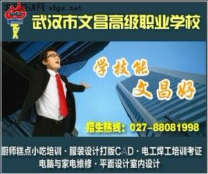 學(xué)校簡介武漢市文昌高級(jí)職業(yè)學(xué)校是經(jīng)國家商標(biāo)總局注冊、武漢市勞動(dòng)和社會(huì)保障局審核批準(zhǔn)、市民政局備案的一所綜合性職業(yè)學(xué)校。教學(xué)面積近萬平方米,擁有中、高級(jí)職稱的教職員工六十余人。學(xué)校為適應(yīng)社會(huì)就業(yè)再就業(yè)的需求,目前開設(shè)有就業(yè)率高的熱門專業(yè)。年培訓(xùn)各類技能人才三千多人次。全國免費(fèi)熱線:4000-345-234