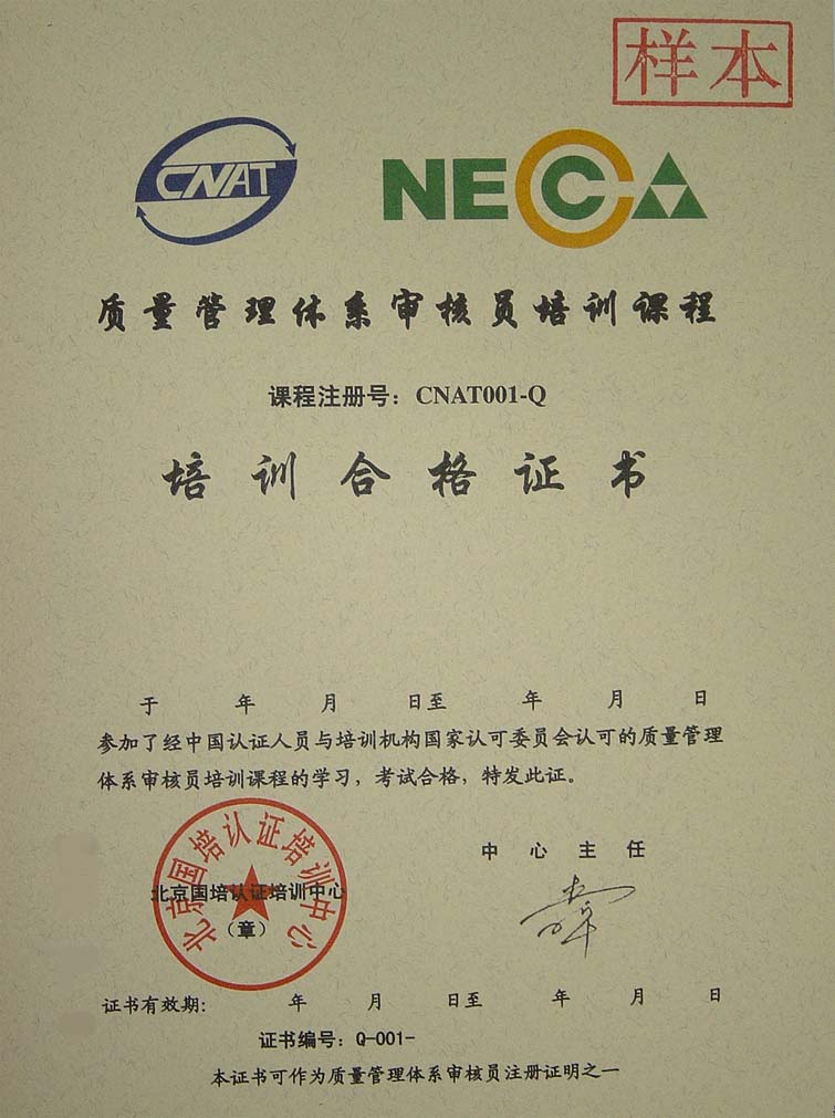 ISO9000質(zhì)量管理體系國(guó)家注冊(cè)內(nèi)審員培訓(xùn)