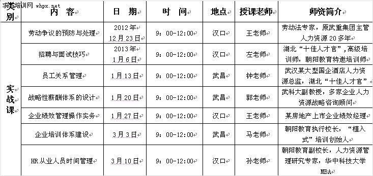湖北朝陽職業(yè)培訓(xùn)學(xué)校是加拿大朝陽教育集團在湖北投資的職業(yè)培訓(xùn)機構(gòu),2004年經(jīng)湖北省勞動廳批準(zhǔn)開展職業(yè)資格培訓(xùn)和申報工作(中華人民共和國辦學(xué)許可證號:4200003000135號),是湖北省最早開展職業(yè)資格培訓(xùn)的機構(gòu)之一。2008年和2009年連續(xù)兩年被評為湖北省“十佳人力資源機構(gòu)”,2009年中標(biāo)湖北省政府“特別職業(yè)培訓(xùn)計劃”,學(xué)校有先進(jìn)的教育管理體系和一流的行銷團隊,擁有國際領(lǐng)先的培訓(xùn)管理和銷售系統(tǒng)。朝陽教育自進(jìn)入湖北以來,秉承“競爭(Rivalize)、勤勉(Industrious)、誠信(Sincere)、團結(jié)(United)”的企業(yè)精神和“以高端帶低端,以就業(yè)促招生,以質(zhì)量創(chuàng)優(yōu)勢,以服務(wù)樹品牌,以合作求發(fā)展”的教育方針,各項事業(yè)均取得了長足的發(fā)展,朝陽教育現(xiàn)已發(fā)展成為湖北職業(yè)教育的知名品牌。學(xué)校已累計培訓(xùn)學(xué)員3萬多人,人力資源師、企業(yè)培訓(xùn)師、公共營養(yǎng)師、理財規(guī)劃師、職業(yè)經(jīng)理人等項目的培訓(xùn)已在全省處于領(lǐng)先地位。- 課程信息