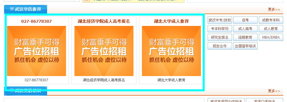 首頁、指定的大分類及小類別、關聯(lián)分類培訓信息頁頂部 |