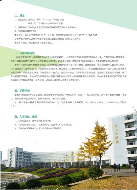 2017年華中科技大學(xué)網(wǎng)絡(luò)教育招生簡(jiǎn)章介紹如下: